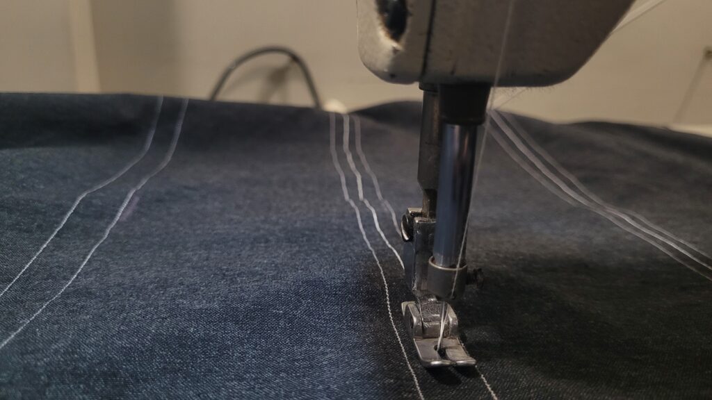 On a technical standpoint (and you can skip this paragraph if you don’t care about how I make my shirts), plaid is the opposite of safe. It is the next step for me. To run across a line with my needle going through my own work requires a confidence that I have mustered after hours and hours of doing this. Takes alot of planning too: do my horizontal lines run over the vertical ones, do I embroider all the vertical lines together, will the lines have the level of randomness to be called strings? Is this too boring? Is plaid still boring? Is this still plaid?